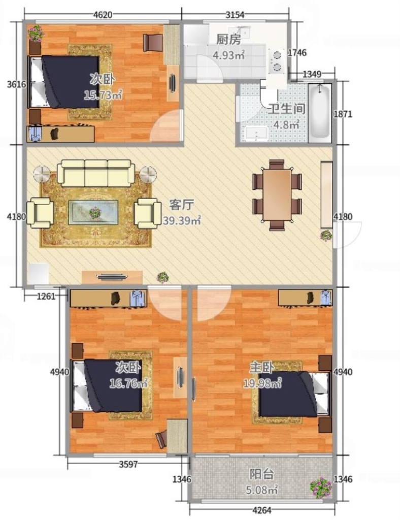 3室2廳1衛(wèi)