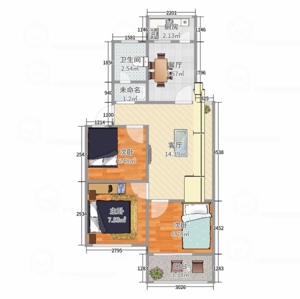 3室2廳1衛(wèi)104m2