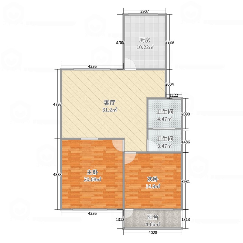 2室1廳1衛(wèi)