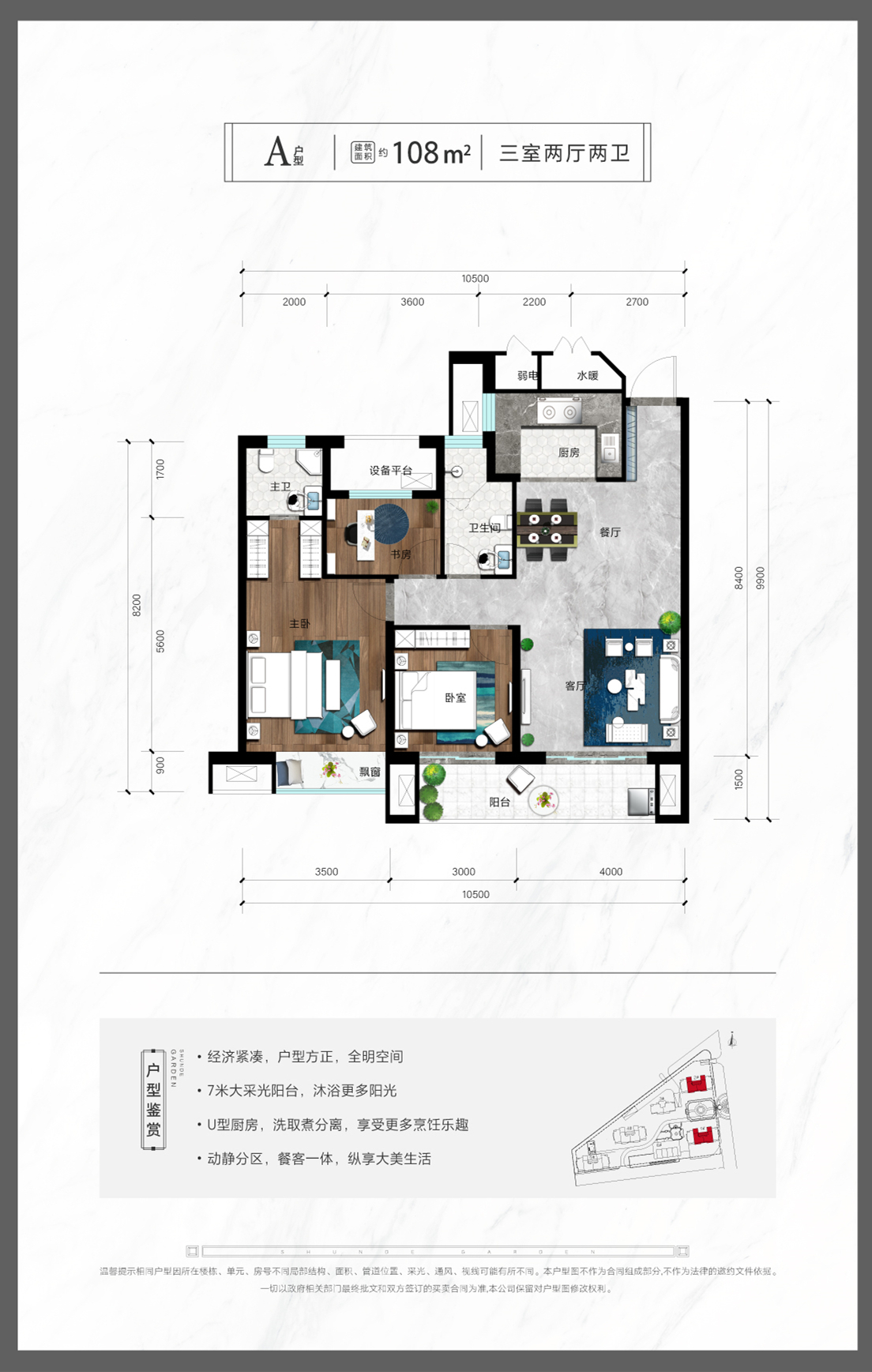 順德A戶型 3室2廳2衛(wèi) 建面:108m2