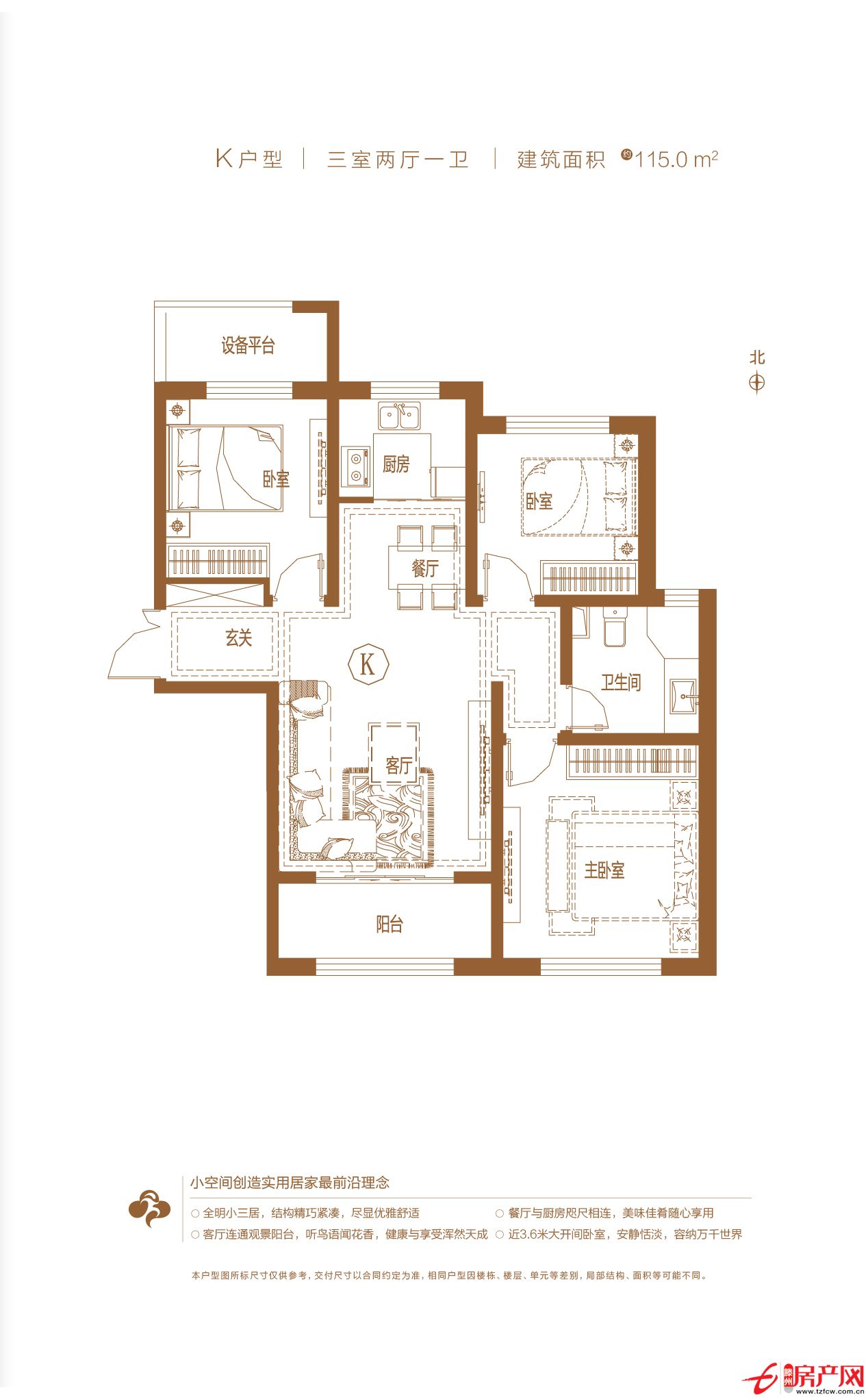 K戶型 3室2廳1衛(wèi) 建面:115m2