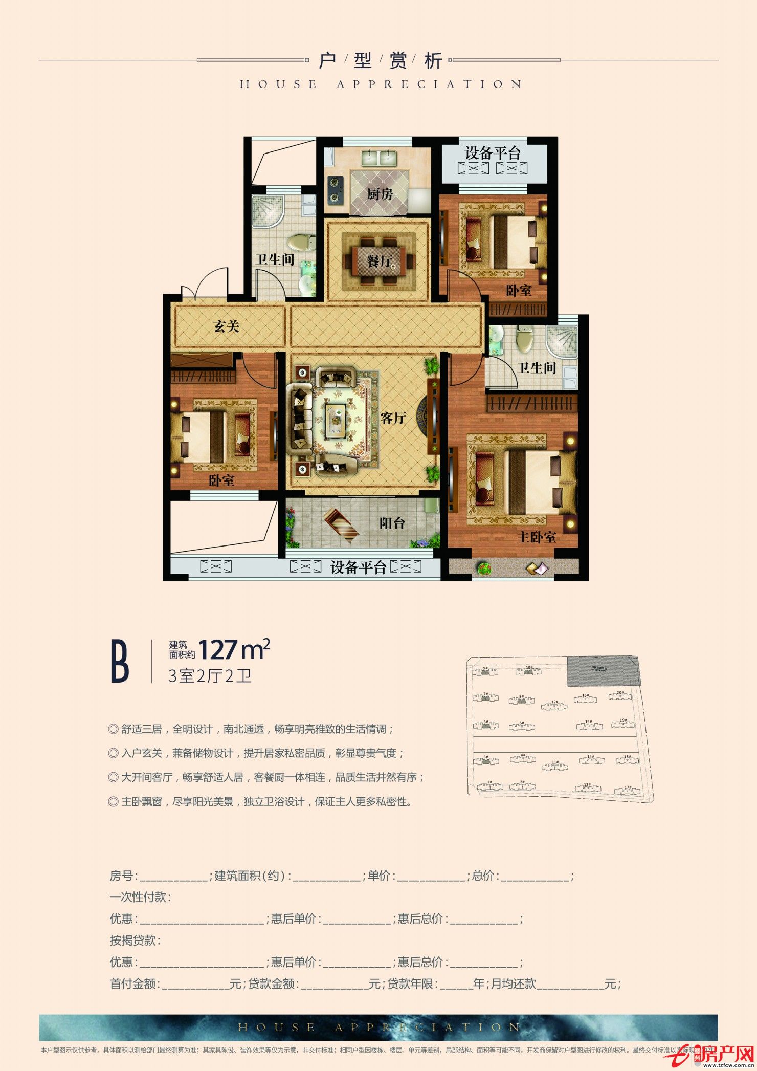 B戶型 3室2廳2衛(wèi) 建面:127m2