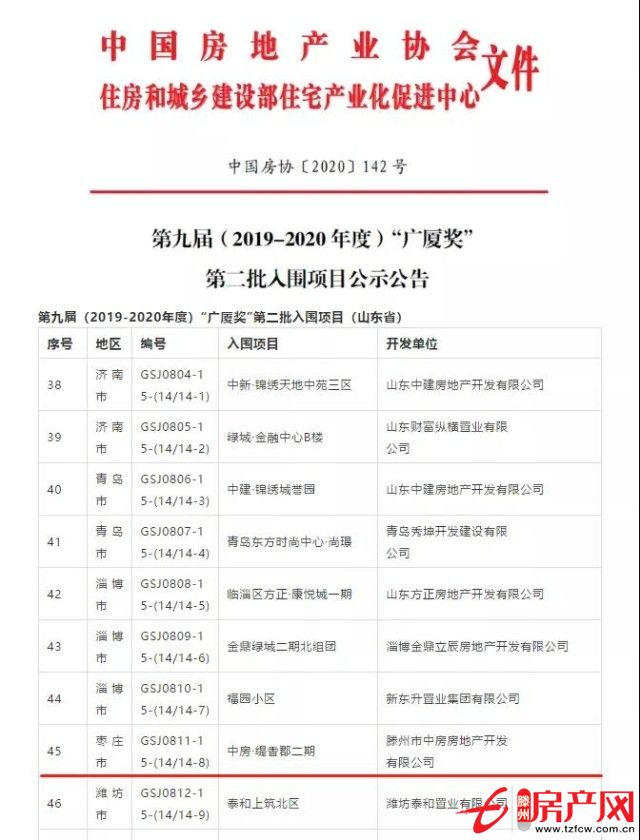 滕州房產(chǎn)網(wǎng) 2020-12-31近日,中國房地產(chǎn)業(yè)協(xié)會、住房和城鄉(xiāng)建設(shè)部住宅產(chǎn)業(yè)化促進(jìn)中心聯(lián)合發(fā)布《第九屆(2019-2020年度)“廣廈獎”第二批入圍項(xiàng)目公示公告》(中國房協(xié)〔2020〕142號),中房緹香·璟園項(xiàng)目經(jīng)過省市評選初審、全國專家組終審等程序,成功入圍第九屆...