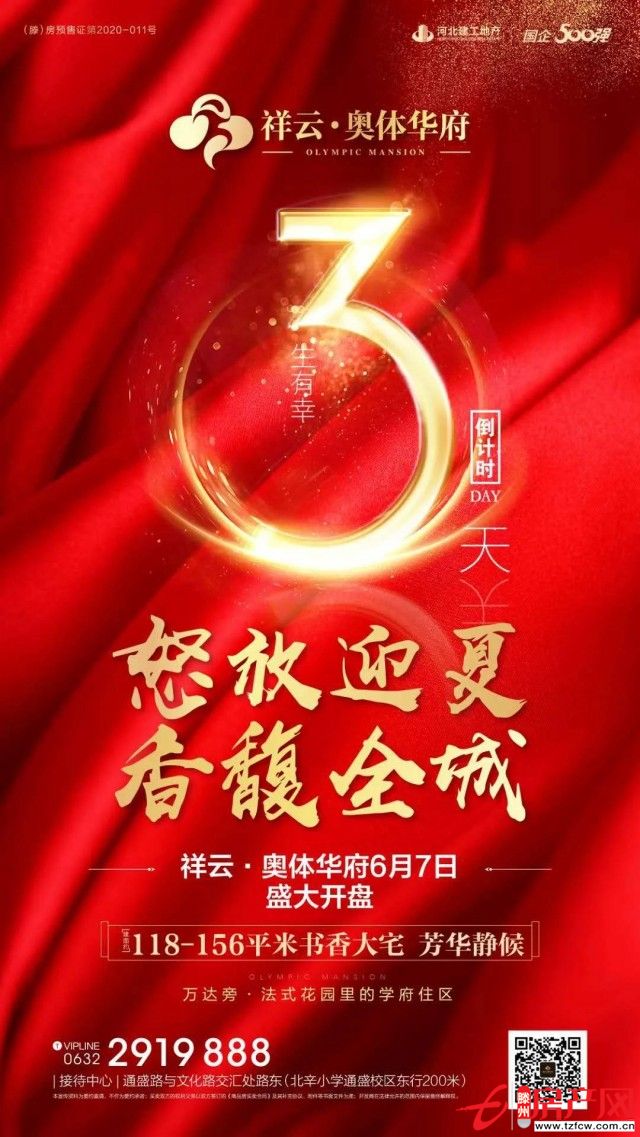 滕州房產(chǎn)網(wǎng) 2020-06-13祥云·奧體華府6月7日盛大開盤認(rèn)籌火爆進(jìn)行中開盤倒計時1天建面約118-156平米書香大宅恭迎品鑒...