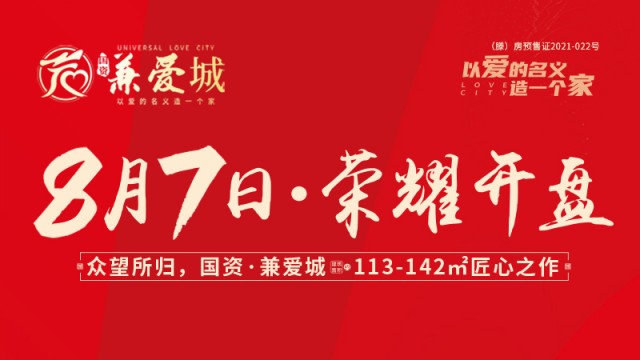 熱銷全城,勢(shì)不可擋8月7日,在萬眾期盼下,國資·兼愛城項(xiàng)目迎來首次開盤,首批推出建筑面積約113-142㎡戶型,開盤登場(chǎng)震撼全場(chǎng),發(fā)聲即為全城矚目?。ㄊ蹣侵行膱?zhí)行嚴(yán)格的三碼防疫工作)緊俏房源全城熱捧據(jù)悉,本此國資·兼愛城采用線上選房的方式,...