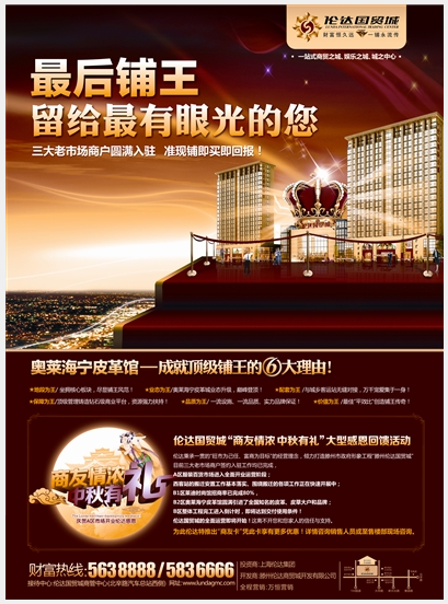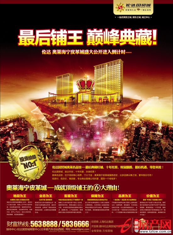 2012-09-27壓軸出場最后鋪王倫達國貿(mào)城政企共創(chuàng)十年托管永續(xù)經(jīng)營奧萊名品館眾多品牌云集之地繁華指日可待財富熱線:0632-5638888/5836666接待中心:倫達國貿(mào)城商管中心(北辛路汽車總站西側(cè))...