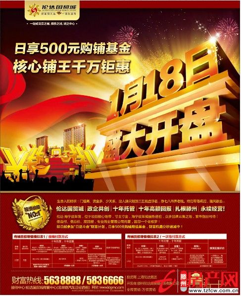 2013-01-18日享500元購鋪基金核心鋪王千萬鉅惠財富熱線:0632-5638888/5836666接待中心;倫達國貿(mào)城商管中心(北辛路汽車總站西側(cè))...