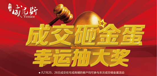 成交砸金蛋,豪禮送不停,城建·威尼斯將于7月25日舉行現(xiàn)場(chǎng)成交砸金蛋活動(dòng),凡當(dāng)場(chǎng)成交住宅或黃金現(xiàn)鋪者,均可參與成交砸金蛋活動(dòng)。冰箱、電磁爐、洗衣液、等豪禮等您來(lái)拿,砸中者即可當(dāng)場(chǎng)兌現(xiàn)。購(gòu)住房、買(mǎi)旺鋪、搶車(chē)位還有大鉅惠。沿街黃金現(xiàn)鋪,商鋪8....