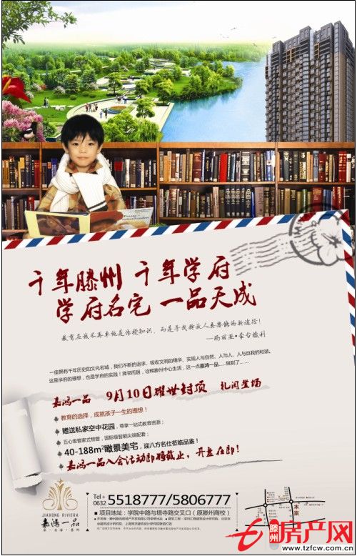 市住建局 2013-05-30嘉鴻一品9月10日耀世封頂禮閱登場教育的選擇成就孩子一生的理想!贈送私家空中花園,尊享一站式教育資源!五心級管家式物管,國際級智能尖端配套!40-188㎡瞰景美宅,迎八方名仕蒞臨品鑒!嘉鴻一品入會活動即將截止,開盤在即!項目地址:學院中路與...