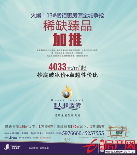 為維護(hù)購房者的合法權(quán)利,我公司特別聲明:人和藍(lán)灣所有在售房源的銷售工作均在人和藍(lán)灣營銷中心舉行,人和藍(lán)灣所有房源、價格和優(yōu)惠以售樓處為唯一標(biāo)準(zhǔn)。請認(rèn)準(zhǔn)本項目唯一銷售熱線:5976666特此公告。滕投集團2014年8月13日...