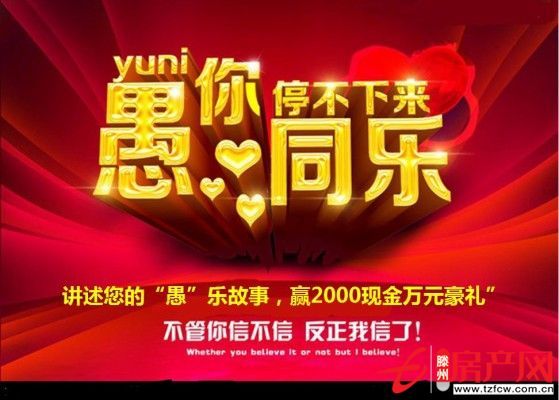滕州房產(chǎn)網(wǎng) 2015-04-18愚人節(jié)到了,Happy愚人節(jié)!一年一度最有趣的節(jié)日---愚人節(jié)。盡管是源自國外,但到了中國,卻展現(xiàn)出非比尋常魅力,因為在這個節(jié)日,沒有路人,都是主角。如果您熱愛生活留心生活的每個細節(jié)如果您在意生活的每分快樂,并樂于分享如果您留意生活的每個奇...
