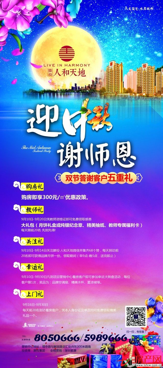 教師禮:9月10日-9月20日,憑教師資格證到營銷中心即可免費領取感恩大禮包一份(月餅禮盒、精美抽紙、教師專屬福利卡),每天限量20名,先到先得