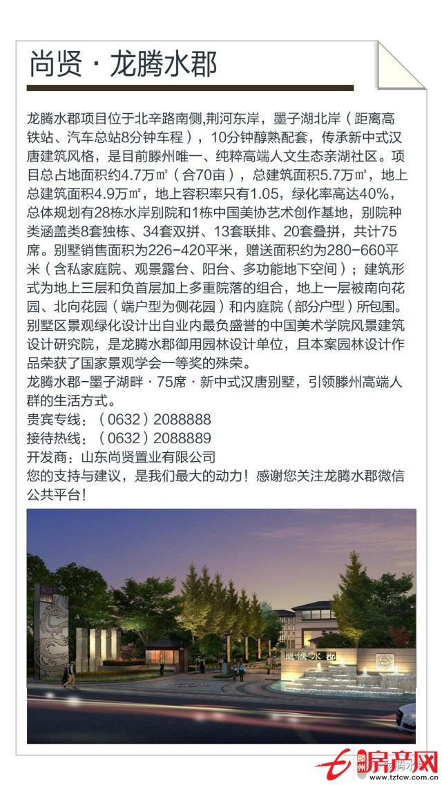 有態(tài)度,才生活。龍騰水郡為滕州人居而來,精心雕琢,打造5.7萬方新中式園林建筑,品味墅居時(shí)光,寫意舒闊人生。建筑面積約226-420㎡臻席湖景藝墅僅75席限量純墅,恭迎品鑒!