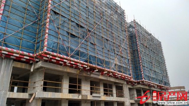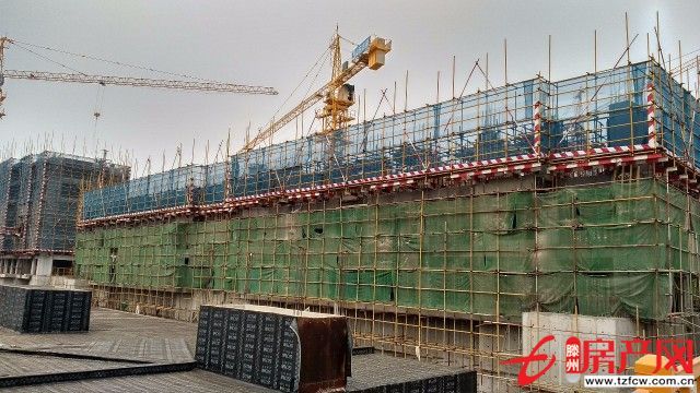 七號樓主體已達(dá)三層,層頂澆灌施工中。