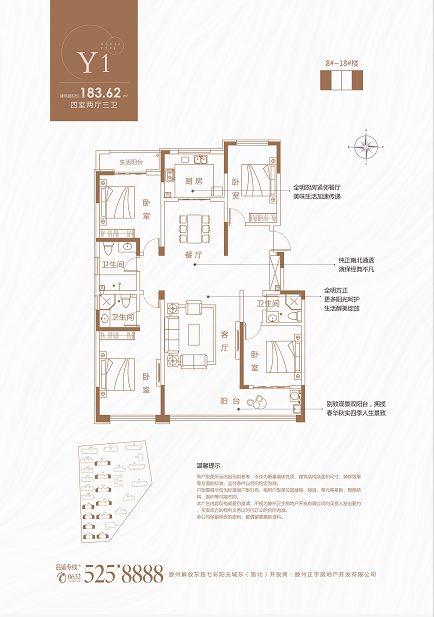 建面約111-186㎡河景洋房,超尺度面寬設計,對居者而言,享明媚陽光,春夏秋冬,四季充沛采光。
