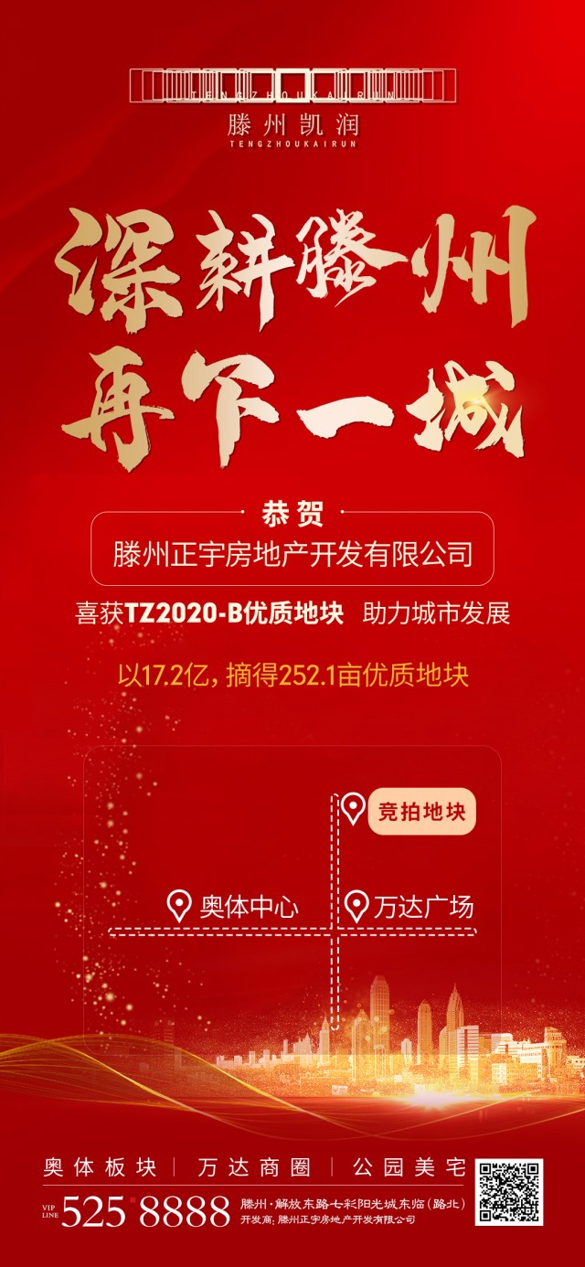 5月28日上午11:00時,滕州正宇房地產(chǎn)開發(fā)有限公司以總價17.2億競得宗地TZ2020—B號地塊。該地塊位于龍泉北路東側(cè)、紅荷路南側(cè)、荊泉路西側(cè)、陶山路北側(cè),是繼凱潤花園項(xiàng)目之后,在滕州的又一精品之作!