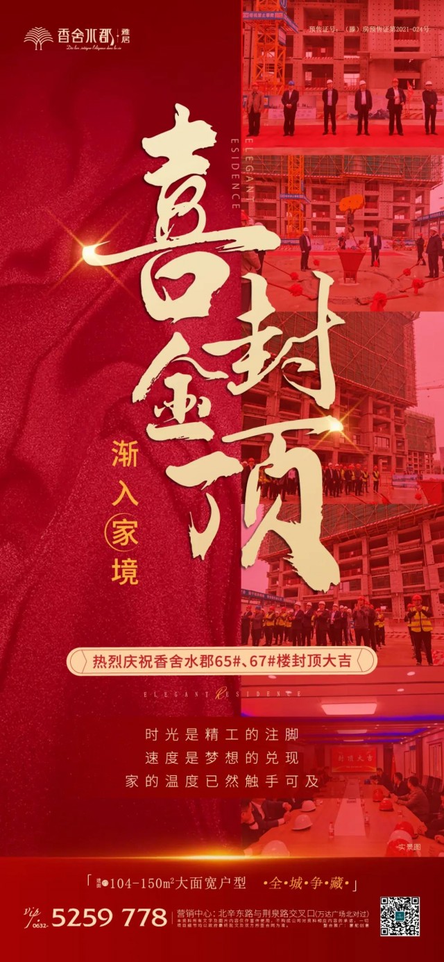 從一紙藍圖到喜封金頂,從鋼筋水泥到溫馨居所。2021年10月10日香舍水郡,喜封金頂!用心,鑄就品質(zhì);實力,成就高度;速度,改變生活;繁華,未來可期!