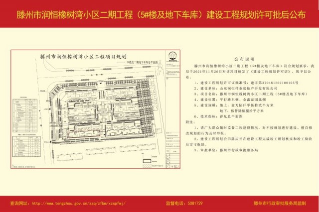 潤恒橡樹灣小區(qū)二期工程(5#樓及地下車庫)建設工程規(guī)劃許可批后公布