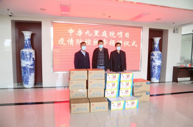 2022年4月6日,中房開發(fā)公司九里庭院項(xiàng)目部向東沙河街道捐助酒精100桶,84消毒液300瓶,口罩3000個(gè),助力抗疫,共克難關(guān)。