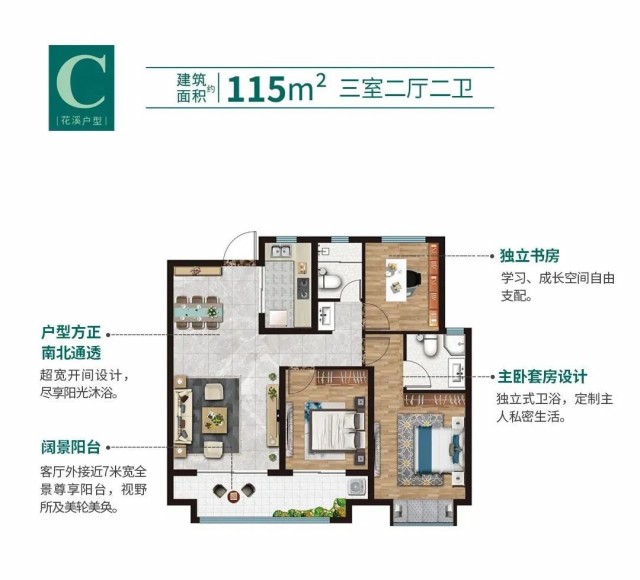 建面約115㎡人居空間,精致“三”房,南北通透,奢闊的客廳,舒適溫馨的餐廳,L型廚房設(shè)計,干濕分離的衛(wèi)生間,闊景尊享陽臺,配備主臥獨自衛(wèi)浴,及觀景“飄窗”設(shè)計,告別了小房間帶給人的擁擠局促感,無不顯示人居細(xì)節(jié),許你三室空間里的世代芳華。