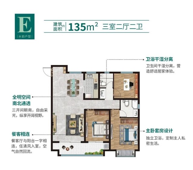 柳岸風(fēng)和建面約135㎡奢闊三室,全明采光戶型,三開(kāi)間朝南,整體通透明亮,動(dòng)靜功能分區(qū),擁有更大的空間格局,以奢闊氣度,致敬不凡人生,既能滿足一家人共享天倫之樂(lè),又同時(shí)可以兼顧個(gè)人生活,讓居住回歸應(yīng)有的尺度,讓生活重現(xiàn)幸福的模樣。