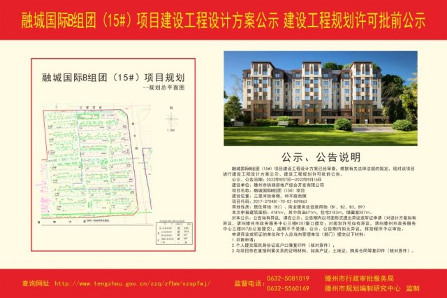 融城國際B組團(tuán)(15#)項(xiàng)目建設(shè)工程設(shè)計(jì)方案公示、建設(shè)工程規(guī)劃許可批前公告