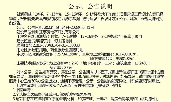 凱潤(rùn)潤(rùn)城建設(shè)工程設(shè)計(jì)方案、建設(shè)工程規(guī)劃許可批前公告