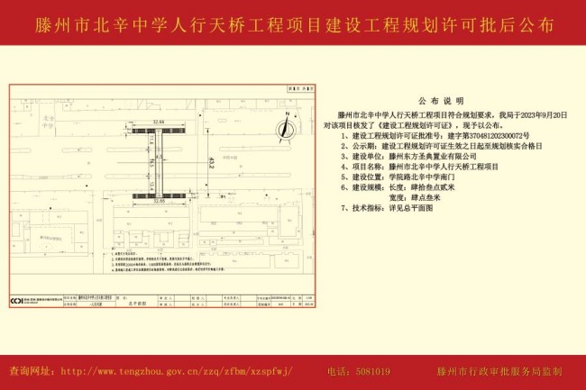 滕州市北辛中學(xué)人行天橋工程項(xiàng)目建設(shè)工程規(guī)劃許可批后公布