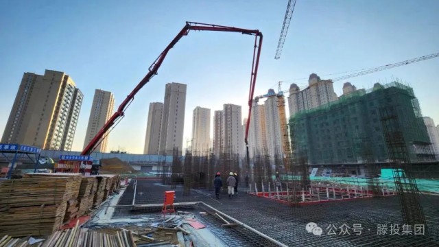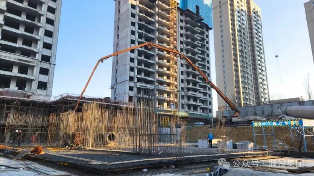 1月24日,隨著氣溫開始回暖,滕投悅府二期項目各棟號紛紛開始進行大體積混凝土澆筑作業(yè),其中動工時間最晚的12#樓也開始了筏板基礎(chǔ)的澆筑,10#、14#、15#、16#、19#等棟號也紛紛進行主樓或配套車庫的澆筑作業(yè)。
