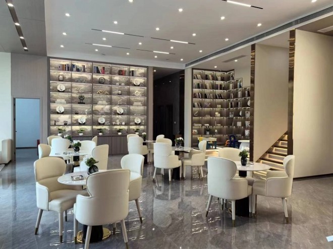 城建·瓏悅城營銷中心采用現(xiàn)代風格,其接待前臺、水吧臺、洽談區(qū)、戶型單體模型及吊燈,造型新穎、簡約又不失優(yōu)雅,處處彰顯高端大雅之勢。