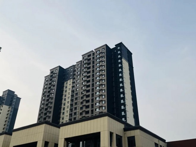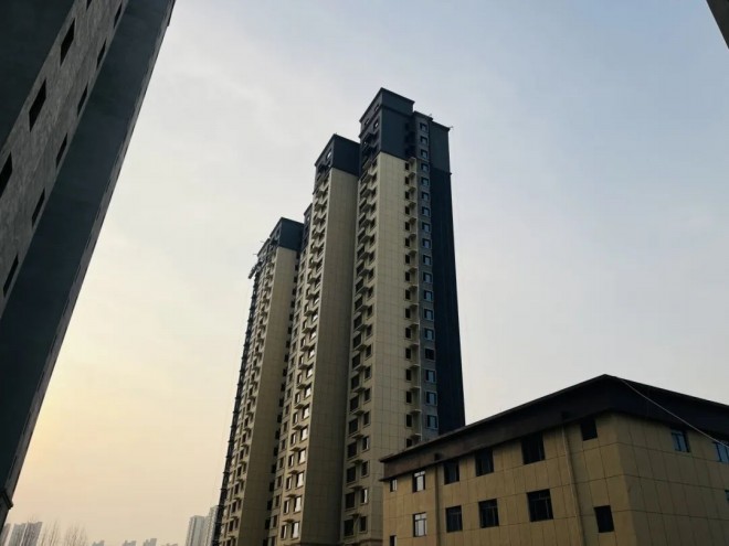 4#樓,內(nèi)外墻砌筑施工完成,內(nèi)墻抹灰完成,屋面工程施工完成,外墻抹灰施工完成,窗戶安裝完成,外立面施工完成70%,室內(nèi)消防完成90%。