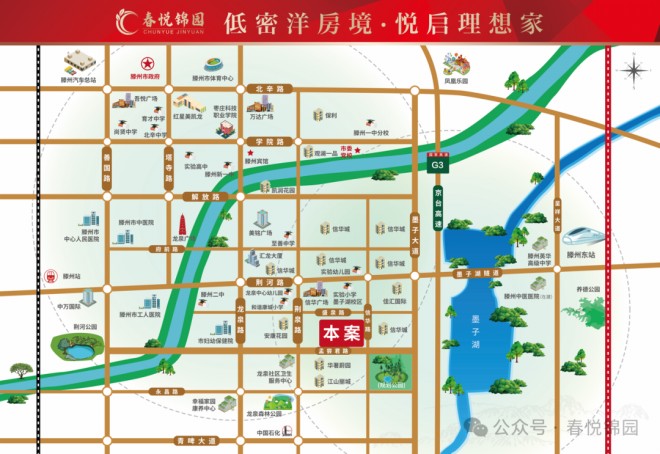 學(xué)府環(huán)繞:實(shí)驗(yàn)小學(xué)墨子湖校區(qū)、至善中學(xué)、滕州一中、滕州二中等名校環(huán)繞,完美構(gòu)筑起一站式全齡段教育體系。