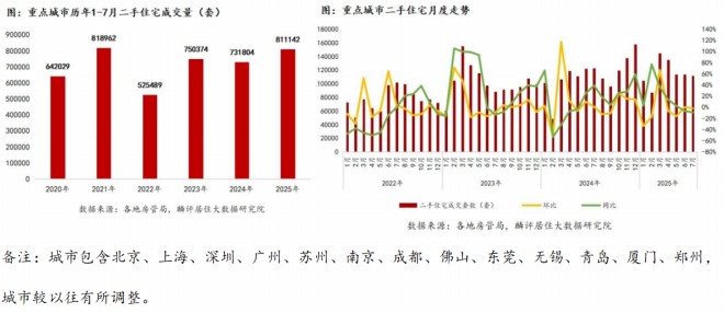 從累計(jì)情況看,今年前7月重點(diǎn)14城成交量為811142套,較去年同期上升10.8%,成交規(guī)模僅次于2021年成交水平。