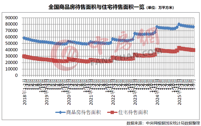 截至10月末,商品房待售面積75606萬平方米,比9月末減少322萬平方米,今年以來連續(xù)八個(gè)月減少。其中,住宅待售面積39645萬平方米,減少292萬平方米。