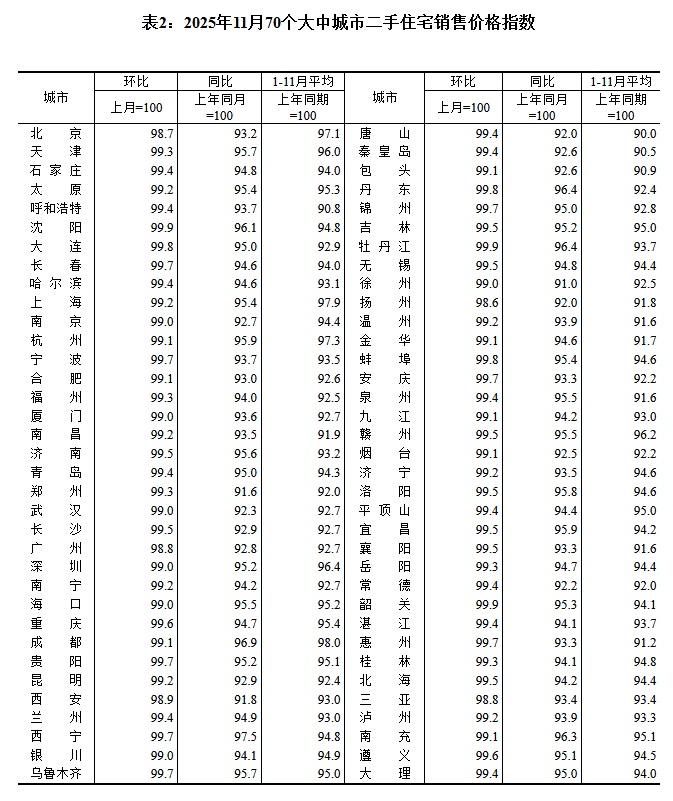 與新房不同,二手房市場仍在深度調(diào)整。國家統(tǒng)計局?jǐn)?shù)據(jù)顯示,11月份二手房價同、環(huán)比均無城市上漲,已經(jīng)連續(xù)三個月出現(xiàn)全跌局面。