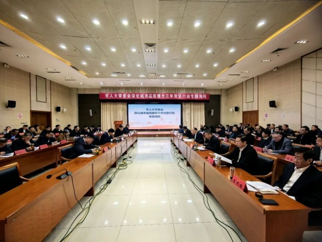 12月17日,市人大常委會舉行深化城市品質(zhì)提升三年攻堅行動專題詢問會。市人大常委會主任朱晏辰,副主任馬冀、杜孝璽、孫劍、孔凡華、王開峰,黨組成員、辦公室主任賈福軍出席會議。