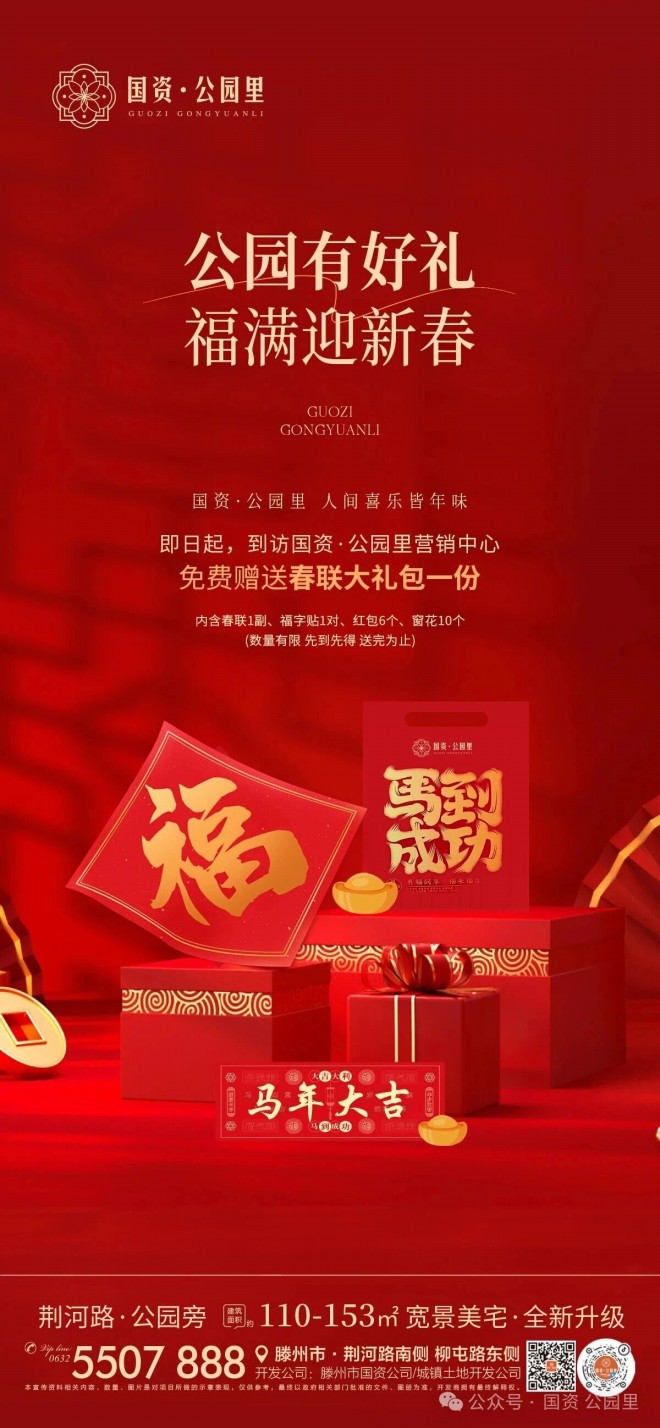 2026年新春,國匠獻禮,溫暖歸家!即日起,親臨「國資·公園里」營銷中心,即可免費領(lǐng)取一份情意滿滿的新春福禮1份,把濃濃年味帶回家。