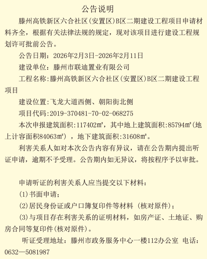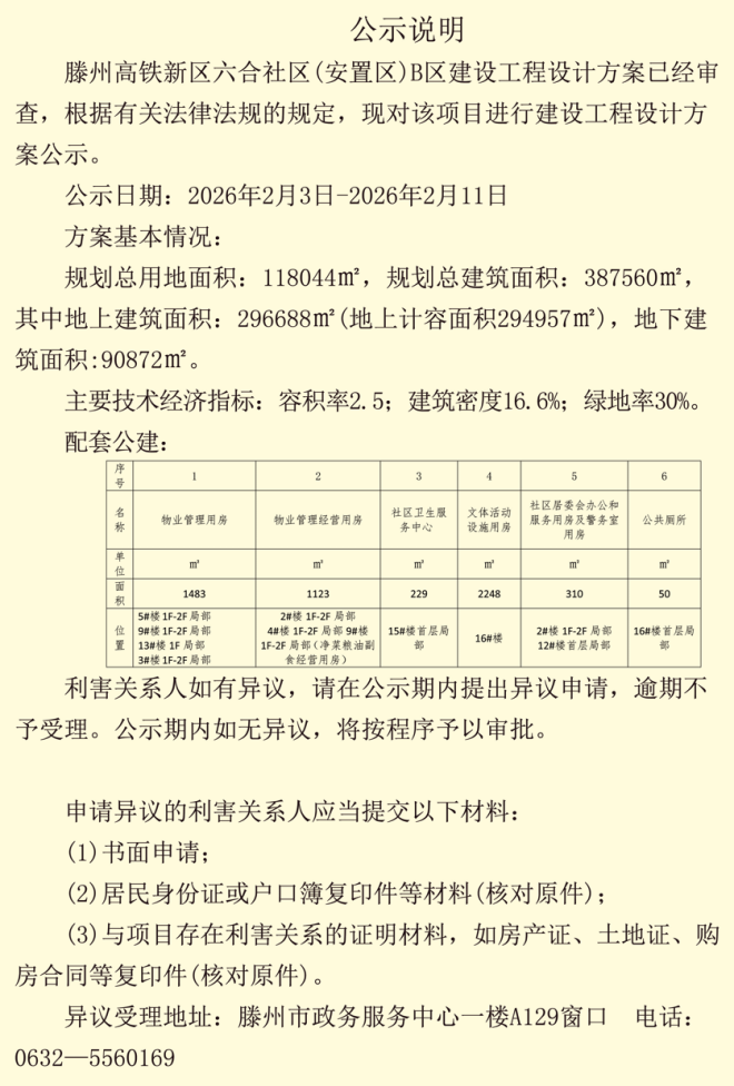 滕州高鐵新區(qū)六合社區(qū)(安置區(qū) )B 區(qū)建設(shè)工程設(shè)計(jì)方案公示、規(guī)劃許可批前公告