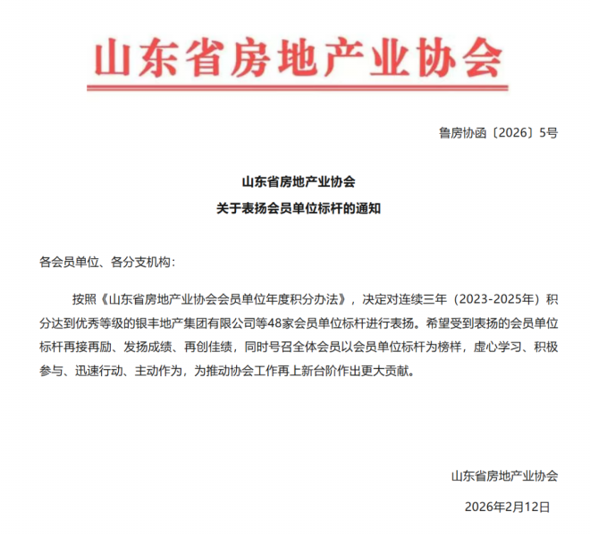 近日,山東省房地產(chǎn)業(yè)協(xié)會(huì)發(fā)布表彰通報(bào),山東信華發(fā)展有限公司憑借亮眼表現(xiàn)斬獲兩項(xiàng)行業(yè)大獎(jiǎng),獲評(píng) “2025 年度優(yōu)秀會(huì)員單位”,并因2023-2025年連續(xù)三年積分優(yōu)秀,被授予 “會(huì)員單位標(biāo)桿” 稱號(hào),成為全省房企中的標(biāo)桿典范,彰顯出行業(yè)對(duì)企業(yè)綜合實(shí)力、責(zé)任擔(dān)當(dāng)與品牌影響力的高度認(rèn)可。