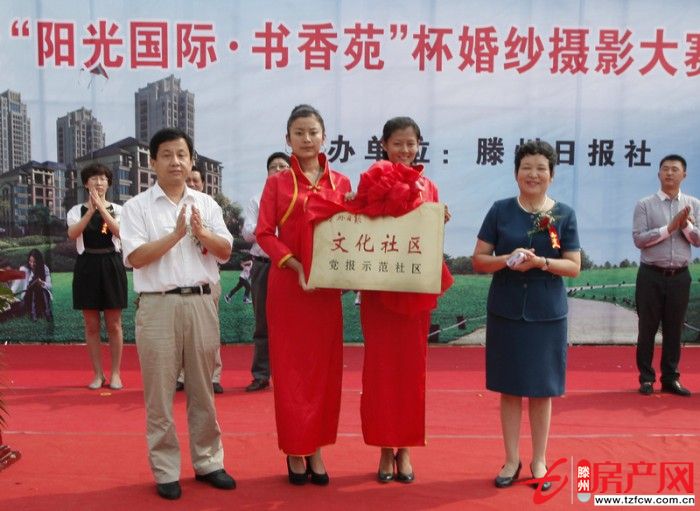 9月25日上午,滕州市文化社區(qū)·滕州日報首家黨報示范社區(qū)揭牌儀式暨“陽光國際·書香苑”杯婚紗攝影大賽啟動儀式在陽光國際廣場舉行。市人大副主任顧天鴿,市委宣傳部副部長王傳偉、滕州日報社社長司國光,滕州市豐盈房地產(chǎn)開發(fā)有限公司總經(jīng)理黨相強,滕州日報社總編輯李衛(wèi)東,滕州日報社總經(jīng)理莊偉等出席活動。