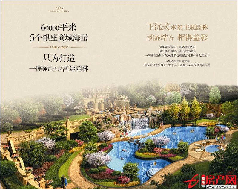 小區(qū)主入口設(shè)在南面,采用古典浮雕迎賓大門,豪華精裝門廳作為入戶的通道,小區(qū)園林景觀以200米長香榭麗舍大道(為客戶指明)為景觀中軸, 萃取法式園林精華以完美的黃金比例締造滕州最純正的中軸對稱景觀, 形成百畝六大主題公園. 將法式風(fēng)格在巴黎首府發(fā)揮到極致.