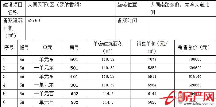 滕州大同天下G區(qū)銷售價格公示表