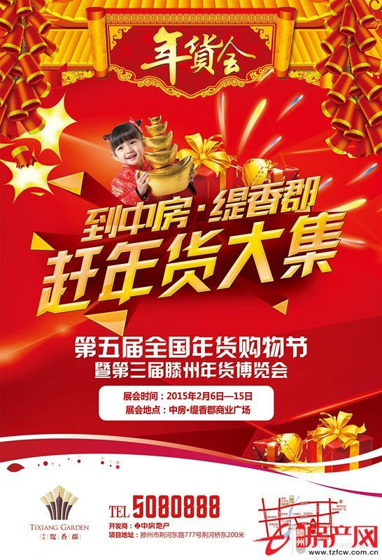 為了活躍市場,滿足春節(jié)期間廣大城鄉(xiāng)居民的物質(zhì)和文化需求,我市將于2015年2月6日至15日,在中房·緹香郡舉辦“第五界全國年貨購物節(jié)暨第三屆滕州年貨博覽會”誠邀全國各地企業(yè)參展。