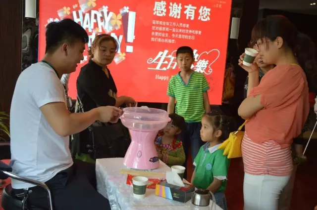 可是只有這些怎么足夠,下面就是這次生日會(huì)我們的小業(yè)主最愛的地方啦!沒錯(cuò)!就是棉花糖!整場(chǎng)生日會(huì),這個(gè)大哥哥恐怕是最受小朋友們歡迎的人了吧!不信你看......